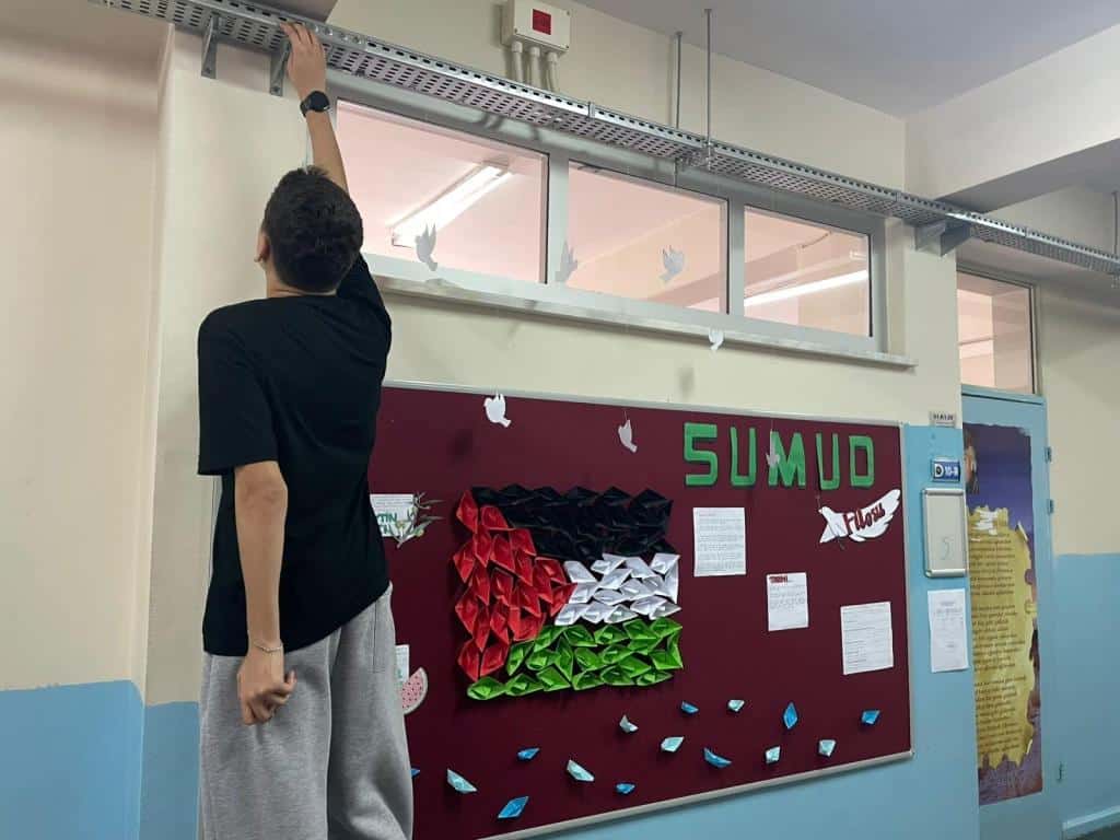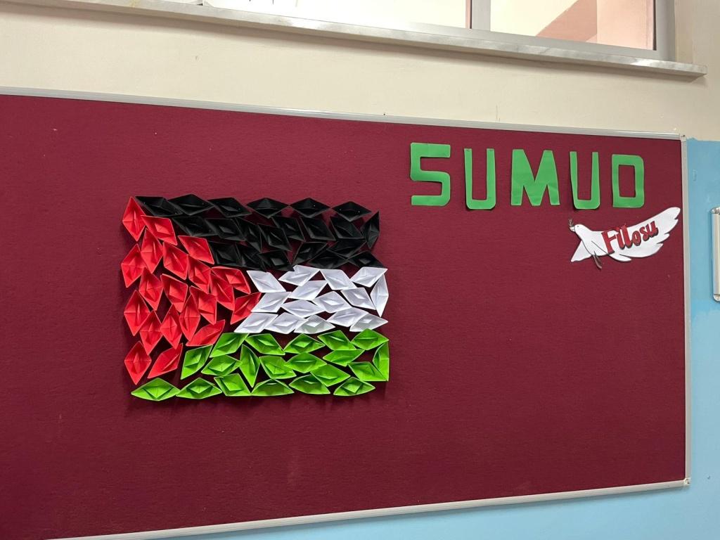 Okulumuzun Değerler Kulübü etkinliği kapsamında Gazze’ye manevi destek amacıyla Sumud Filosu panosu düzenledik.